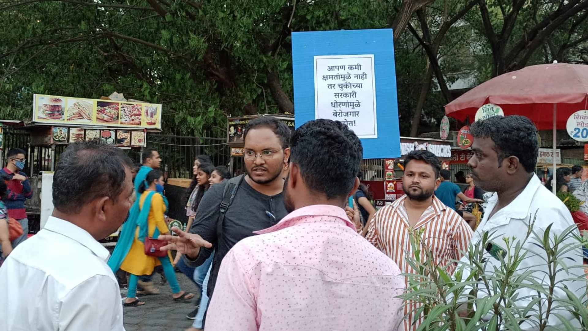 In these two months, we organised one campaign every week on unemployment and price-rise in crowded markets in the heart of the city as well as some tourist spots such as Shaniwar Wada. We attracted the attention of the people there using placards and by singing a catchy composition on unemployment, set to the tune of popular Hindi film song “Papa Kehte Hain”. Then we had a conversation with those who gathered round, about the real reasons for the economic crises and alternative policies.
