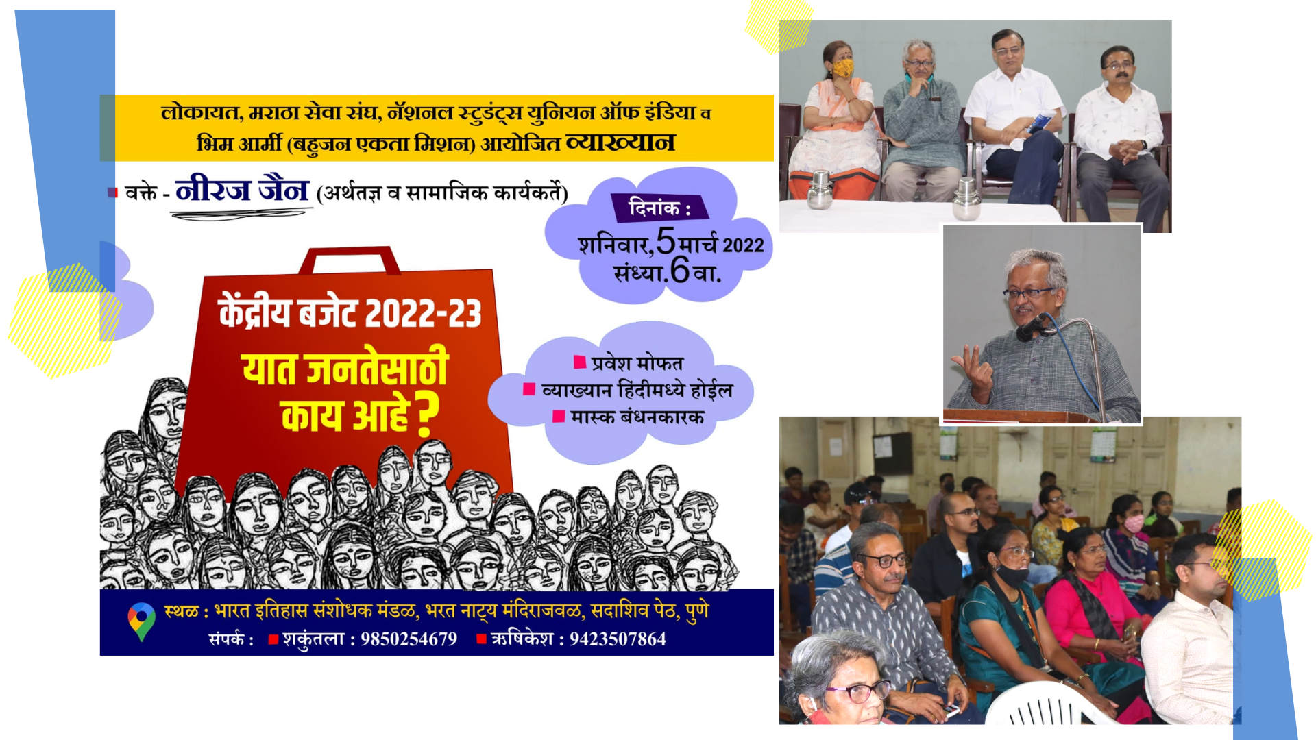 | Public Talk: Union Budget 2022-23, What’s in it for the People? |  | The media has hailed this year’s budget as a “booster dose”. This talk, analyses the budget through the lens of the working people, farmers and the unemployed, and reveals how the budget is a booster for the corporate class and an assault on the poor.
