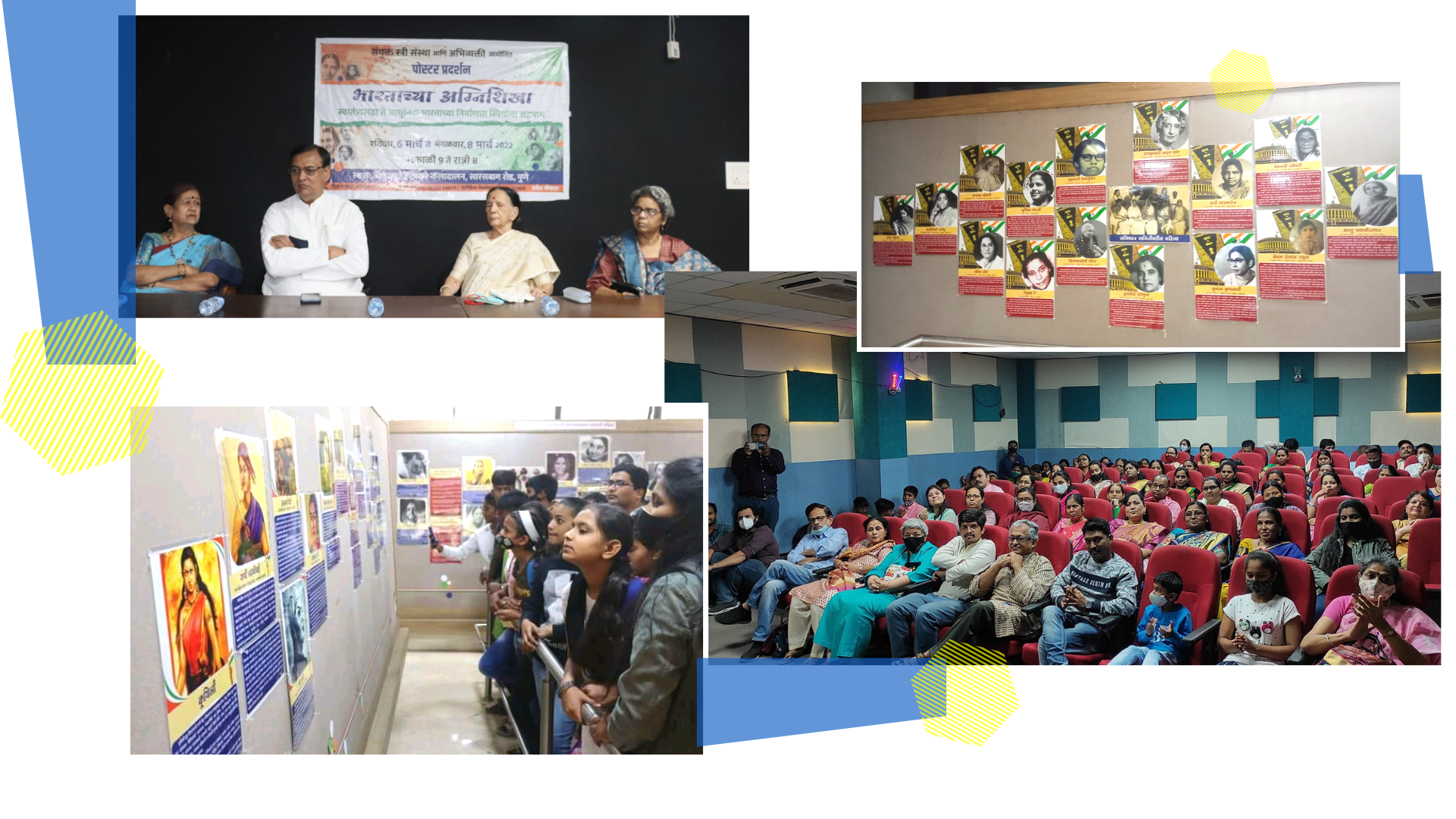 | As we celebrate the 75th year of India’s independence, we must remember the millions of women who gave up their lives, their freedom in the cause of independence. Abhivyakti and Sanyukt Stri Sanstha organised an exhibition of historical photographs and informative posters, highlighting the contribution of women in the freedom struggle.